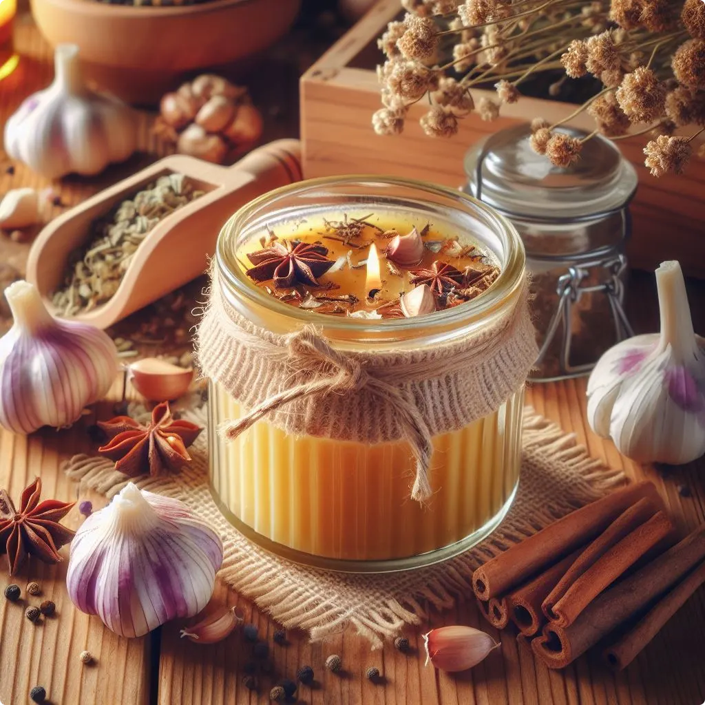 Plaats de lont in het glas en giet voorzichtig de gesmolten kruidenboter in het glas.