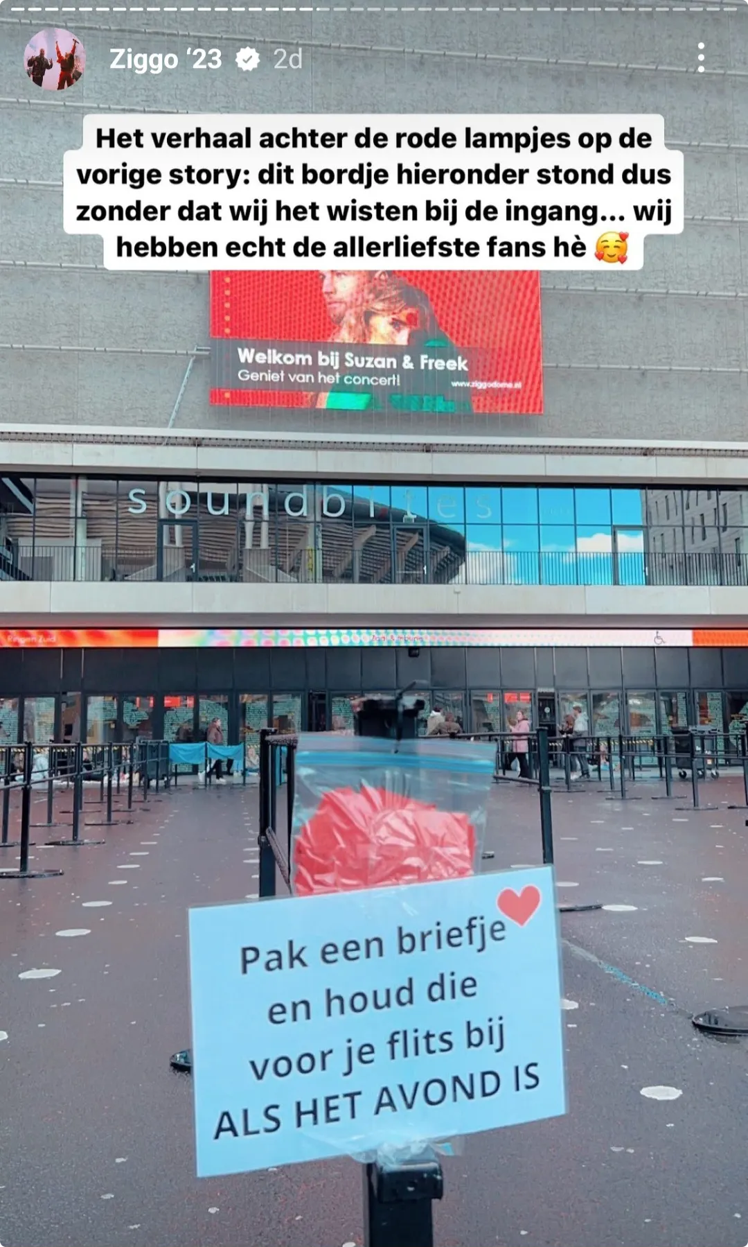 Iedereen kon door de actie van een aantal fans bij binnenkomst van de concertzaal een rood briefje pakken uit een grote bak. Op deze bak was een blaadje geplakt met de tekst "Pak een briefje en houd die voor je flits bij Als Het Avond Is." Daar is zoals hieronder te zien ook goed gebruik van gemaakt.