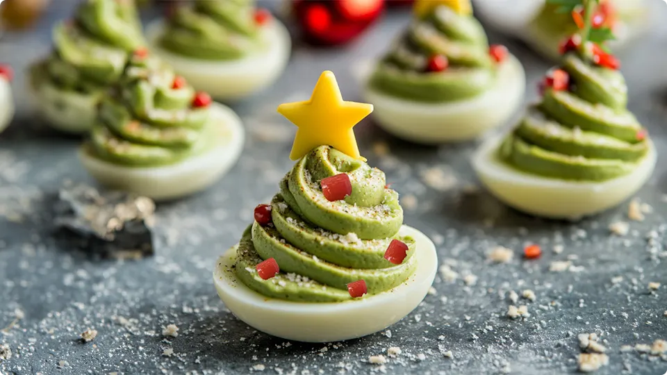 Gebruik een spuitzak om mooie, hoge toefjes in de eihelften te maken.
