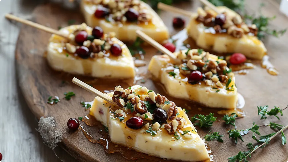 Dip de brie in honing en vervolgens in het noten-cranberrymengsel.