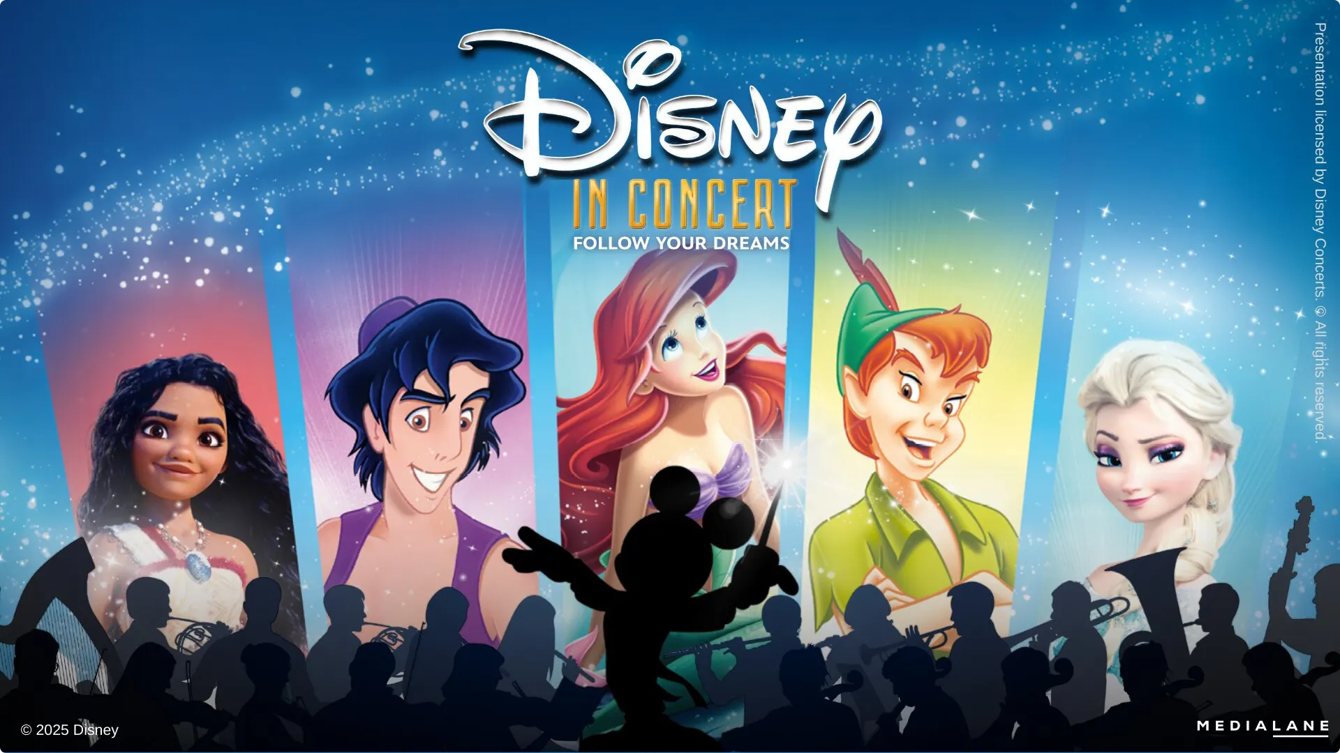 Beleef alle magische muziek van Disneyfilms live bij Disney In Concert: Follow Your Dreams! Na twee succesvolle edities keert het concert weer terug naar de Ziggo Dome en hoor je wederom de grootste hits, gezongen door artiesten als Jamai, Emma Kok en Gaia Aikman en ondersteund door een 55-koppig orkest.